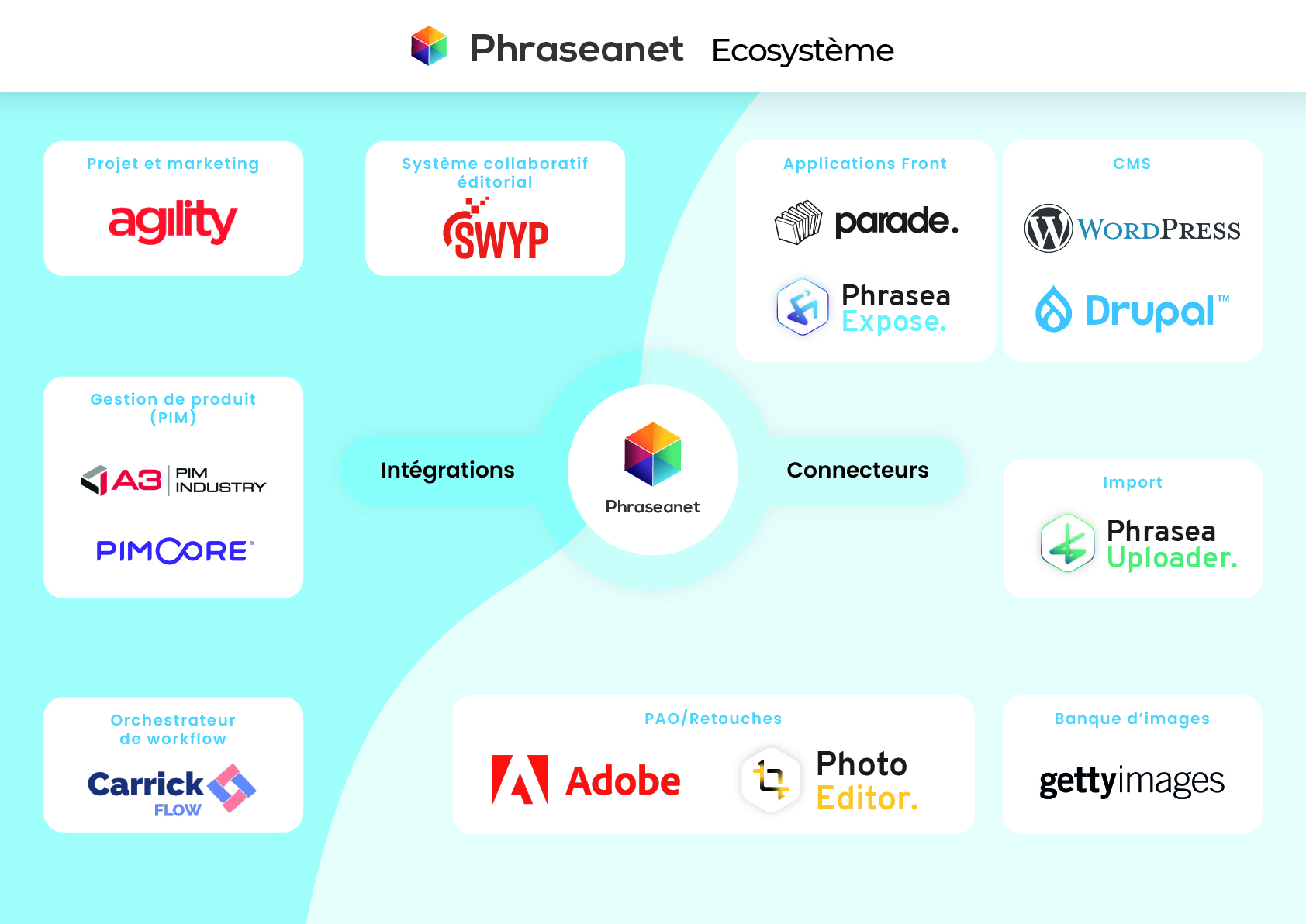 The DAM is a central brick that must be used to feed the whole information system of the company. Phraseanet is a complete solution with its API and its catalog permanently enriched with extensions and addins that allow its interconnection with many applications.