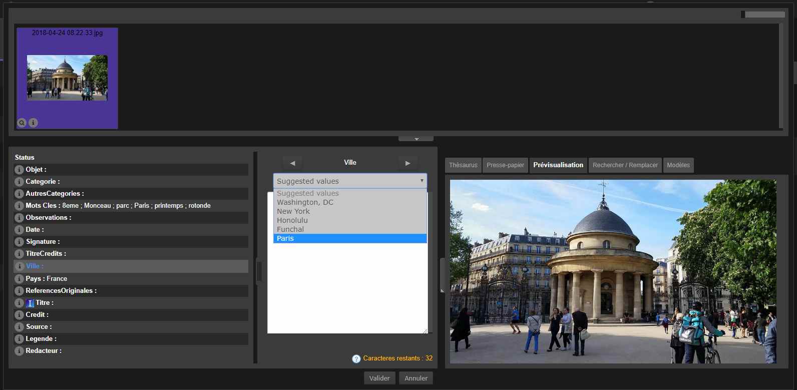 Les valeurs suggérées dans Phraseanet? Très utile, pour renseigner vos champs.