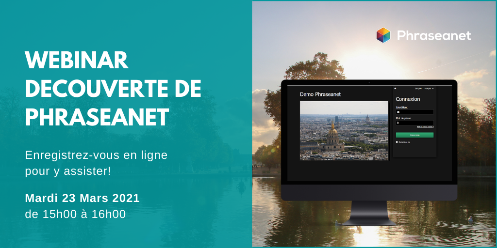 Le prochain webinar Découverte de Phraseanet sera organisé le JEUDI 15 AVRIL 2021 de 15h00 à 16h00.