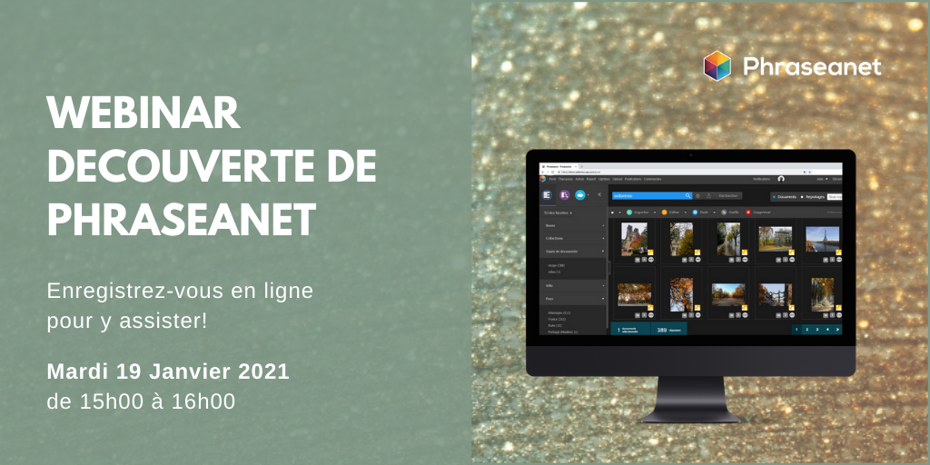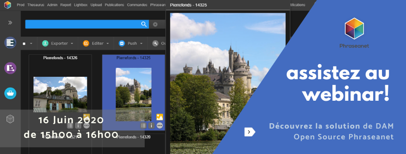 Le prochain webinar Phraseanet aura lieu le Mardi 16 Juin 2020 de 15h00 à 16h00. Pour s’inscrire et assister à cette présentation, veuillez vous enregistrer ici. Ouvert à tous et gratuit.
