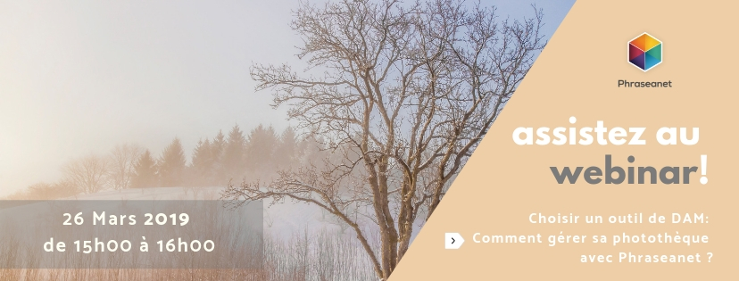 Le prochain webinar Phraseanet aura lieu le Mardi 25 Février 2020 de 15h00 à 16h00.