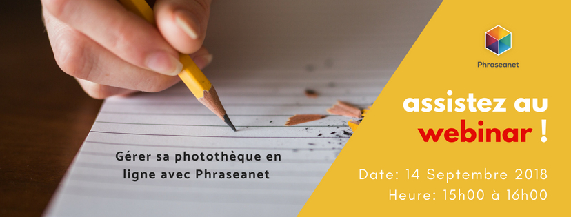 Le prochain webinar Phraseanet aura lieu le Vendredi 16 Novembre 2018 de 15h00 à 16h00.