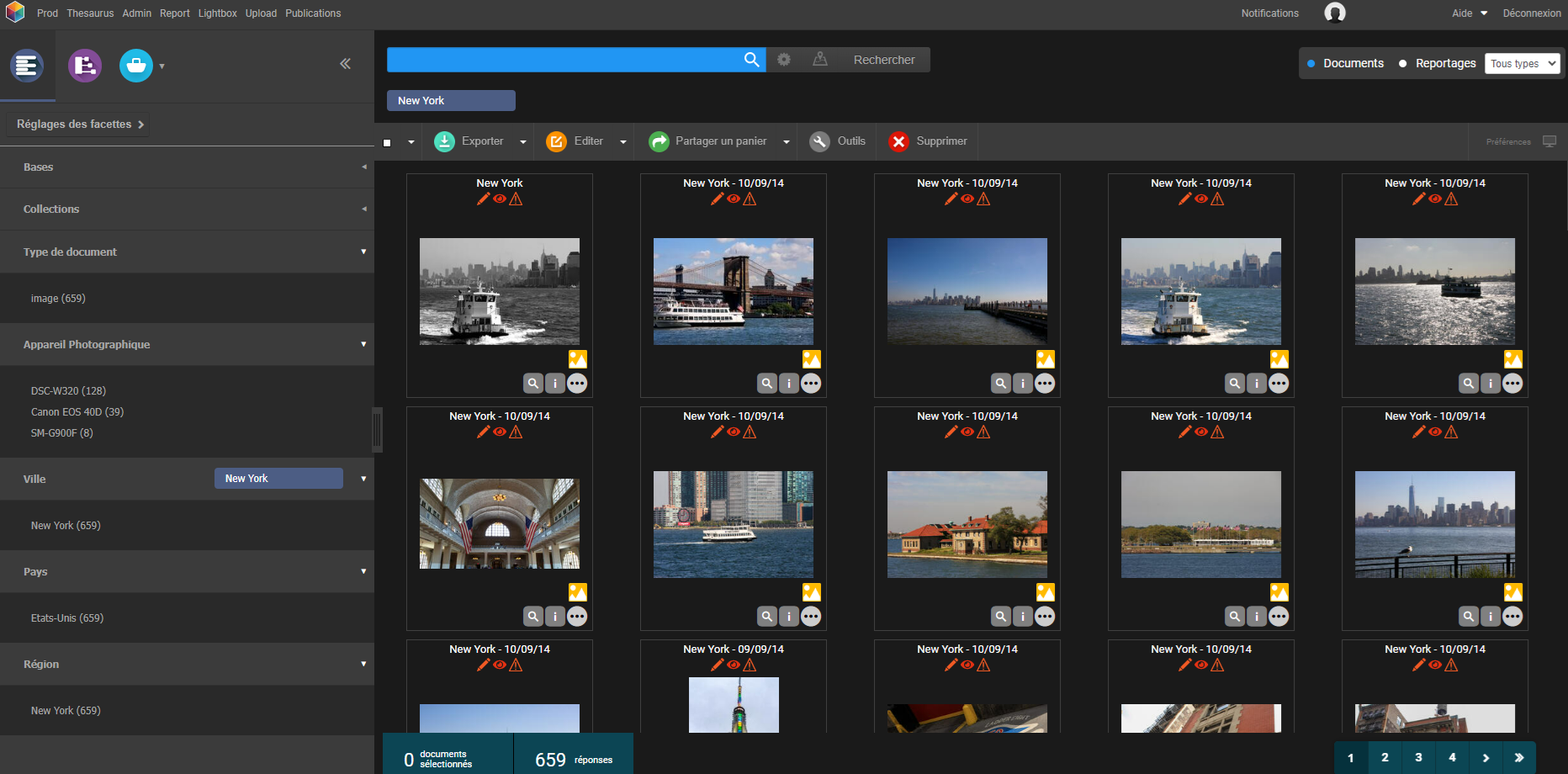 - Interface de Production: Recherchez en utilisant les facettes