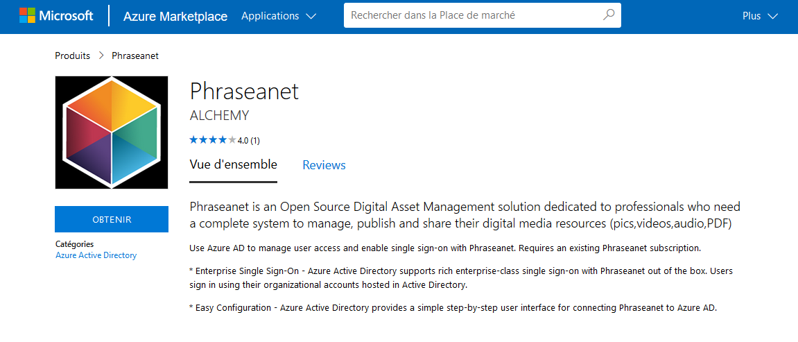 The Phraseanet plugin for Azure Active Directory (Azure AD) allow companies and users of the Microsoft Azure AD directory service to manage the unique authentication for the users accessing Phraseanet.