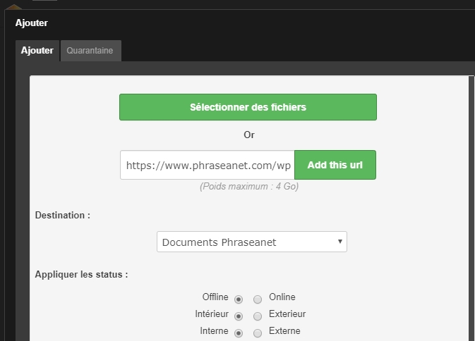 Vous avez désormais la possibilité dans Phraseanet d’ajouter un document à partir d’une URL.